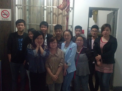 2014年5月11日,景寧老師和已經就業的同學們在學生宿舍留影。