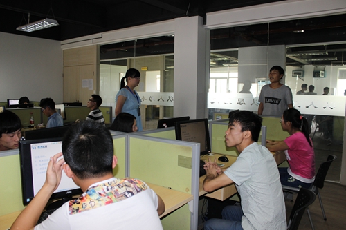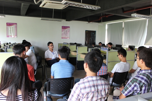 在“職業(yè)鮮體驗(yàn)”的課tang上,實(shí)訓(xùn)督導(dǎo)老師給同學(xué)們講了公司有關(guān)制度和實(shí)訓(xùn)的注意事項(xiàng),還跟各位同學(xué)傾心交談,了解他們的具體需求。同學(xué)們則把自己的職業(yè)困惑和做項(xiàng)目時(shí)遇到的技術(shù)難題等向老師表達(dá),希望在此次實(shí)習(xí)實(shí)訓(xùn)中得到有效的提升。在一片歡快的氣氛中,接著督導(dǎo)老師帶領(lǐng)同學(xué)們參觀了厚溥實(shí)習(xí)實(shí)訓(xùn)基地——光谷軟件園。