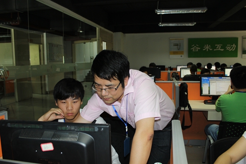 夏小山老師在課堂上輔導(dǎo)學(xué)生做項目